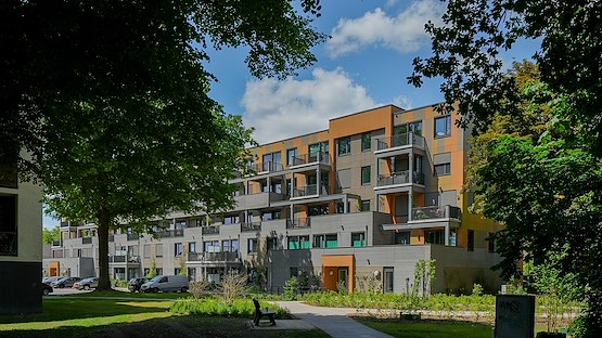 Op het voormalige Sonnebornterrein in Haarlem worden verschillende gebouwen met 160 woningen en 264 parkeerplaatsen gerealiseerd. Het ontwerp is in handen van Sweco Architects en VE-R (landschap).