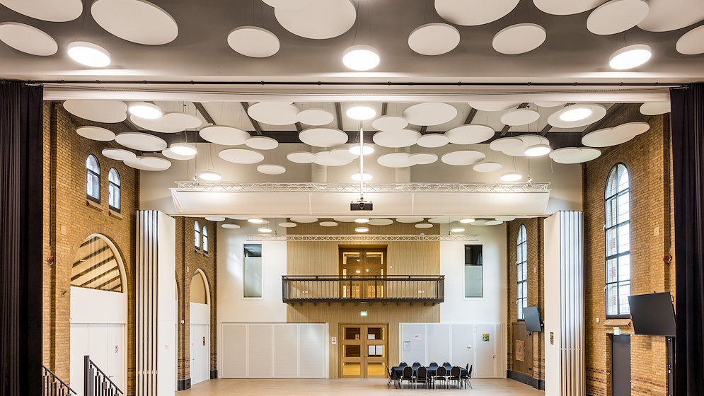 Slank én sterk vluchtrouteaanduiding armatuur voor gebruik o.a. in gymnastiek- en sporthallen