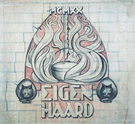 Michel de Klerk, Embleem 'Eigen Haard' voor een woningbouwcomplex ('Het Schip') aan het Spaarndammerplantsoen (derde blok), de Zaanstraat, de Hembrugstraat en de Oostzaanstraat in Amsterdam, 1920, collectie Nieuwe Instituut
