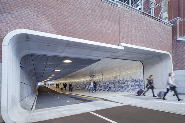 • Underwater Bicycle Parking & Cuyperspassage – Innovative infrastructure beneath Central Station and an artistic passage with Delft blue tiles