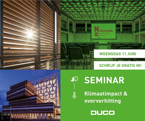 De impact van klimaatverandering is steeds voelbaarder. Lange hittegolven, stijgende temperaturen en strengere bouwnormen dwingen de bouwsector tot innovatieve oplossingen. DUCO Ventilation & Sun Control brengt daarom toonaangevende experts samen tijdens het seminar ‘Klimaatimpact en oplossingen tegen oververhitting’ in het Naturalis museum te Leiden.