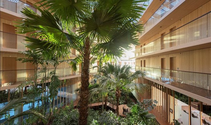 De wandeling eindigt in Hotel Jakarta met zijn tropische binnentuin. De tuin is ontwikkeld in samenwerking met de Hortus Botanicus, die de tuin ook onderhoudt.