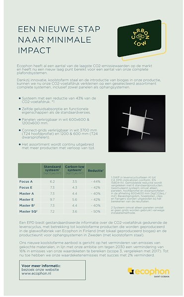 Saint-Gobain Ecophon ontwikkelt, produceert en verkoopt akoestische producten en systemen die bijdragen aan een goede werkomgeving door het verbeteren van het welzijn en de prestaties van mensen. Op dit moment is Ecophon een wereldwijde leverancier van akoestische plafond en wandsystemen die bijdragen aan een goede ruimteakoestiek en een gezond binnenmilieu met de focus op kantoren, onderwijsgebouwen, zorginstellingen en industriële productiegebouwen. Onze belofte “A sound effect on people” is de kern van alles wat we doen.