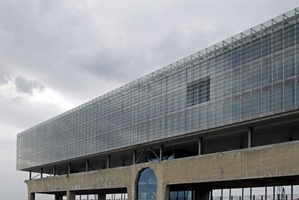 (OTH). Het betreft een lichtgewicht werkgebouw van drie verdiepingen boven een betonnen afbouwsteiger.