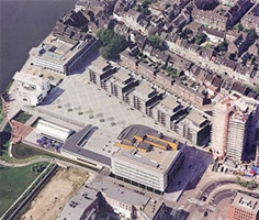 Het gebouw verrijst op de plek van een voormalig zwembad aan het Marktplein. De nieuwbouw is ontworpen volgens het beeld van een hand met gestrekte vingers die de burger de hand reikt, meldt het architectenbureau.