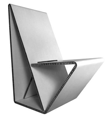 , ontworpen door Maartje Nuy en Joost van Noort, is een vouwstoel bestaande uit een stuk honingraatkarton. Carolien Laro’s