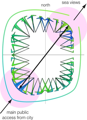 Het door archipelago ontworpen gebouw wordt omringd door groen, een conditie waarvan gebruik is gemaakt door veel uitzicht te creëren. Ook is op het maaiveld een colonnade gerealiseerd, die de overgang van binnen naar buiten verzacht.