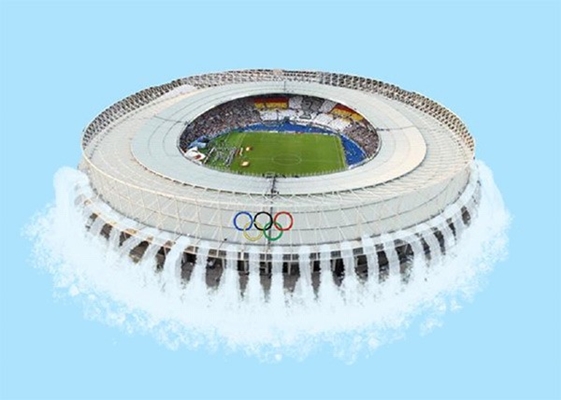 Een duurzaam stadion met watervallen op een eiland in het IJmeer. Dat is een van de ideeën uit het ‘Olympische bidbook’