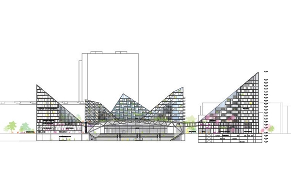 Zelfs de centrale hal is niet alleen bedoeld voor sport (voetbal), er kunnen ook concerten, tentoonstellingen, congressen en markten plaatsvinden. De hal bevindt zich onder het plein en is vanuit alle straten herkenbaar. Het heeft op dit niveau een open karakter: de voorbijgangers wordt een ruime blik in het interieur gegund.