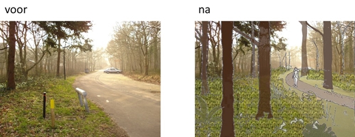De infrastructuur van paden vormt een ‘fijnmazige dooradering van het hele terrein’. Bijzonder element is het voormalige tramtracé dat ooit de navelstreng was die Duin en Bosch met de buitenwereld verbond. Nu zal het als voetpad worden ingericht.
