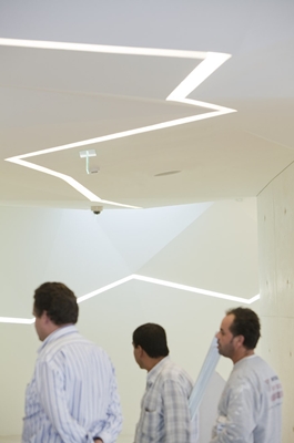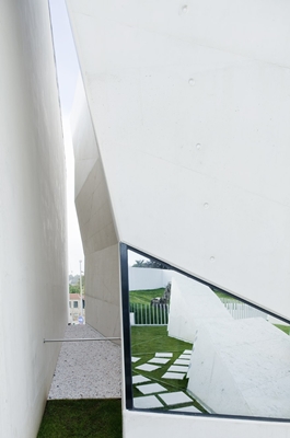 De draagfunctie is grotendeels toegewezen aan de betonnen huid, die is geconcipieerd als een eierschaal. Heel letterlijk is dit te zien in wanden en plafonds van het interieur, waarin de voor een ei typische ‘scheuren’ zijn aangebracht.