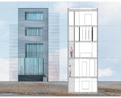 Wonen op niveau, zowel letterlijk als figuurlijk. Een interessant huis, geïnspireerd op het klassieke herenhuis. Dit ontwerp getuigt van inlevingsvermogen: beneden werken en boven wonen. De gebruikswaarde van het werkgedeelte beneden en in de kelder, met de in de achtertuin verdiepte patio, is hoog en geschikt voor vele doeleinden. De boven gelegen privé-vertrekken zijn voldoende afgeschermd. De jury was unaniem in haar oordeel dat ‘Wonen op Niveau’ een boeiend en compleet ontwerp is.