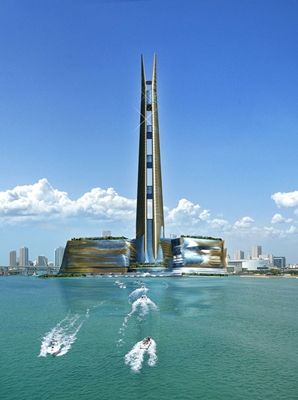 Deze ‘stad in een stad’ is 157 meter hoger dan de Burj Khalifa en moet komen te staan op Watson Island. Momenteel is hier het attractiepark