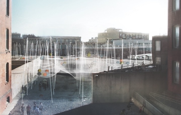 De winnende inzending Pole Dance bestaat uit een systeem van palen en elastieken netten, dat beweegt door acties van mensen of onder invloed van de (weers)omstandigheden. Het is in vele opzichten een metafoor voor de huidige onzekere tijd,
