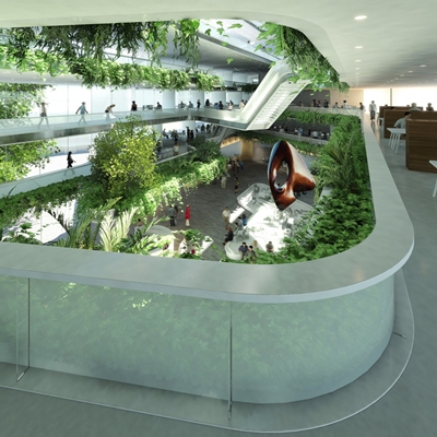 De transparante hoofdentree in het ontwerp van Meyer en Van Schooten moet het gevoel van een continue stedelijke ruimte vanaf de Grote Markt versterken en de bezoeker de hal met alle publieke functies en ontmoetingsplekken van de kantoren in leiden. Verder spelen de zichtlijnen en verbindingen tussen de verdiepingen en afdelingen een grote rol.
