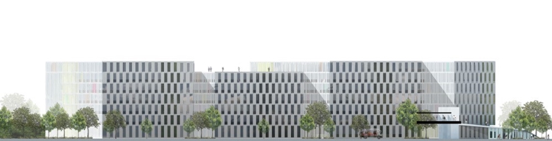 Voor de publieke entree komt een plein, dat dankzij de glazen gevels op natuurlijke wijze overgaat in het gebouw. Om het lager gelegen plein te verbinden met het station, wordt aan een zijde een helling voor fietsers en voetgangers aangelegd. Het plein gaat over een in eveneens nieuw park.