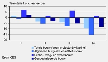 De branche van de burgerlijke en utiliteitsbouw leed in 2009 het zwaarst onder de economische crisis. Tot deze sector behoren onder meer woningen, kantoren en ziekenhuizen. De omzet daalde met iets meer dan 8 procent.