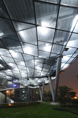 Dit zwevende bouwwerk vormt onderdeel van de hoofdterminal en is bedekt met vierkante glaspanelen. De Shanghai Cruise Port Terminal is grotendeels verzonken in een kilometer lang gedeelte van een nieuw park langs het water. Het bijna 60.000 vierkante meter omvattend complex herbergt ook een expositieruimte.