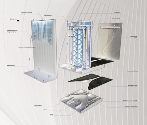heeft een ontwerp gemaakt voor een toren op een eiland voor de kust van Rio de Janeiro. De toren werkt op basis van zonne-energie en slaat overbodige energie op in watertanks, waarmee een kunstmatige waterval gecreëerd kan worden.