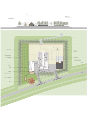 Op het erf wil het bureau de scheiding tussen de functies juist laten vervagen, om het steeds fabrieksmatiger wordende karakter van boerderijen een halt toe te roepen.