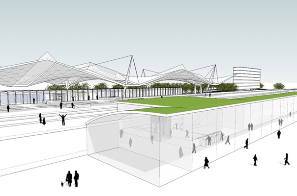 (1923-1993) blijven in cepezeds visie de spectaculaire dakconstructie en bijzondere onderbouw geheel behouden. “De ingrepen die wel zijn voorzien zijn minimaal, takken goed aan op de stedelijke structuur en brengen de kracht en helderheid van het oorspronkelijke ontwerp weer terug.”