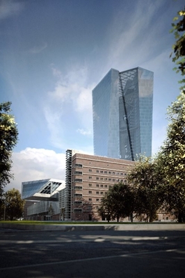 inmiddels 850 miljoen euro, gebaseerd op het prijsniveau van 2005. Naast het ontwerp voor het gebouw zit ook de herinrichting van een park aan de voet van de ECB bij dit bedrag in. De bouw van het 185 meter hoge gebouw moet in 2014 zijn voltooid.