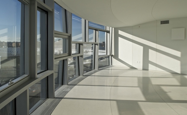 Aan de kant van de Hudson-rivier is het gebouw bekleed met ongeveer 1700 glaspanelen in verschillende groottes en kleuren. Het hierdoor ontstane vorm- en kleurenpatroon doet denken aan schilderijen van Mondriaan. Verandering van het licht gedurende de dag heeft sterke invloed op het aanzicht van de toren.
