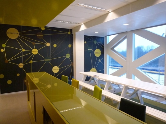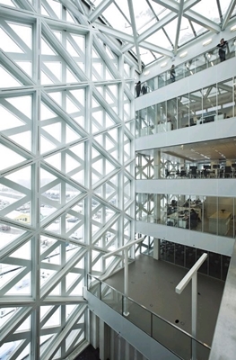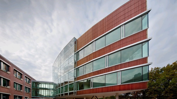 De centrale plek in het gebouw is het grote atrium, de gemeenschappelijke ruimte. Hieromheen zitten de leslokalen, studielandschappen en werkruimtes.