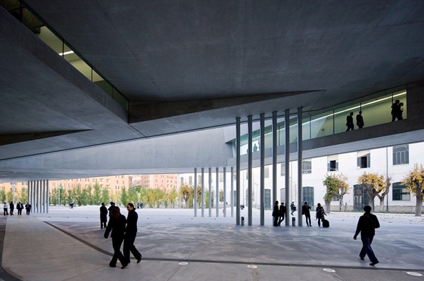 De circulatielijnen, duidelijk zichtbaar in het exterieur, komen voort uit de stedelijke context.