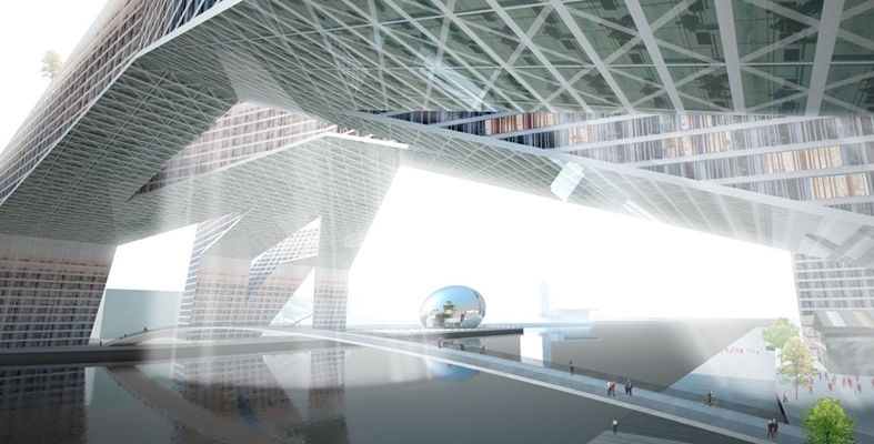 De in hoogte afwisselende bebouwing daarboven is een combinatie van werk- en woongebouwen. The Olympic Bridge is een verticale stad. Het combineert publieke functies in de vorm van grote overdekte pleinen met kleine front offices, hotels, winkels en een mediacentrum.