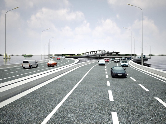 Het verkeer in Hong Kong rijdt aan de linkerkant, maar het verkeer in China rijdt rechts. Door de dynamische vormen van de wegen in het ontwerp wordt een oplossing geboden voor het probleem van de verschillende rijstijlen van de toekomstige gebruikers van de weg. Door middel van een zogenaamde ‘flipper’ wordt verkeer (om)geleid in veilige banen door de wegen als het ware te draaien. Zo wordt wisselen van baan in het ontwerp volgens de architecten een ‘onvergetelijk spektakel’.