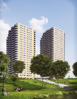ontworpen project bestaat uit twee woontorens. De hoogste toren van negentig meter zal als eerste gebouwd worden.