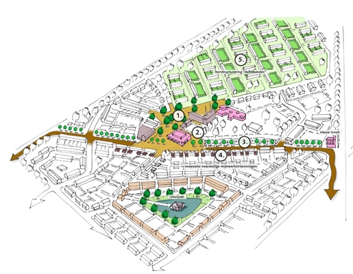 Het renovatievoorstel voor de voormalig mijnwerkerswoningen vormen het derde deel van het plan. Per vier woningen worden de middelste twee samengevoegd. De buitenste twee worden vergroot via een aanbouw. Door deze ingreep voldoen de woningen beter aan de eisen van de huidige tijd. Door het behoud van de mijnwerkerswoningen is ook de verwijzing naar de mijnbouw behouden gebleven. De mijnbouw is lange tijd bepalend geweest voor dit deel van Nederland.