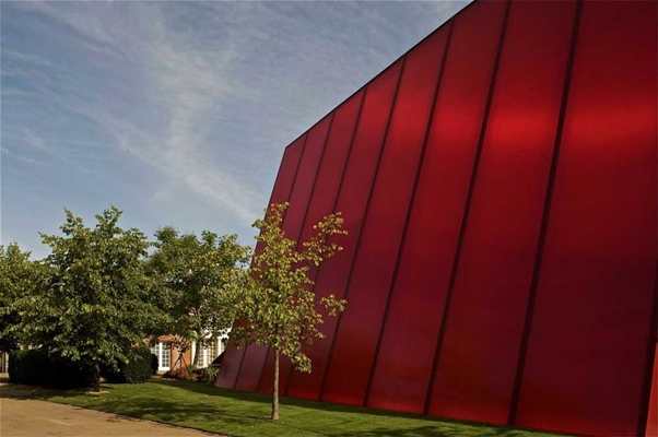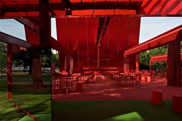 Door het paviljoen een fel rode kleur te geven wilde de architect het paviljoen af laten steken tegen de groene omgeving. Daarbij is de rode kleur ook een verwijzing naar Britse iconen als de Britse postbussen en dubbeldekkerbussen.