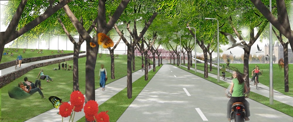 Bepalend voor het stedenbouwkundig plan was de geluidshinder van de doorgaande weg aan de zuidzijde. Dit maakt het volgens BFAS nodig een verhoogd park te realiseren. Dit park vormt onderdeel van de stadsrand en is met een nieuwe brug direct gekoppeld aan het tegenovergelegen Slot Assumburg, een uit de twaalfde eeuw stammend kasteel.