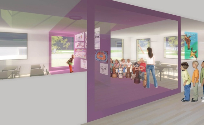 In de brede school zullen een basisschool, een kinderdagverblijf, een peuterspeelzaal en een buitenschoolse opvang worden gehuisvest. “Om optimale synergie tussen deze verschillende partijen te faciliteren is het ontwerp gebaseerd op een kruisvormige plattegrond, waarbinnen veel aandacht is besteed aan de inpassing van de onderwijskundige visie”, zegt BDG.