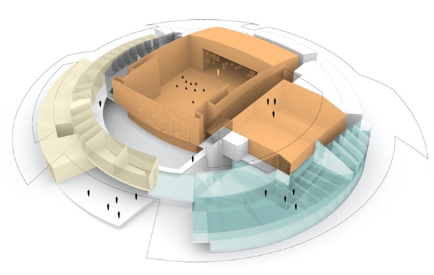 Het programma omvat een achthonderd plaatsen tellende concertzaal, een kleiner theater, congreszalen, een bibliotheek met leerplaatsen en andere onderwijsvoorzieningen. De grote zaal vormt het centrale onderdeel van het gebouw, de rest van het programma is er omheen georganiseerd.