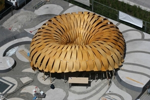 Een tijdelijk houten onderzoekspaviljoen heeft haar deuren geopend in Stuttgart. Het paviljoen toont de nieuwste ontwikkelingen van computertechnieken in de architectuur.
