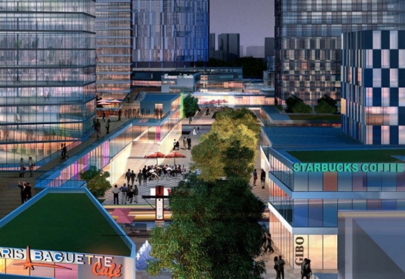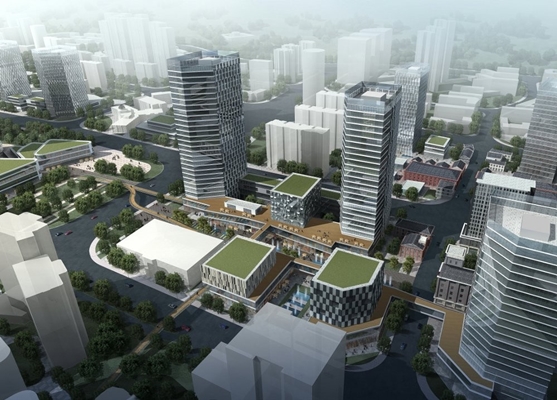 in Shanghai gewonnen. Het Duitse bureau ontwierp een wijk met een mix van hoge stedelijke dichtheid en een parkachtige omgeving.