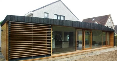 heeft een woonhuis in Zaltbommel uitgebreid. Verrijdbare schermen met louvres beschermen de woning desgewenst tegen zonlicht.