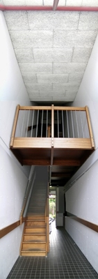 Daarnaast zijn onder andere de gevel en de entreehal verbeterd. De regenpijpen en dakgoten zijn in de gevel weggewerkt en de gesloten houten entreepui is vervangen door een volglazen entree met rvs-postvakken om zoveel mogelijk licht en zicht in de smalle entreehal te krijgen.