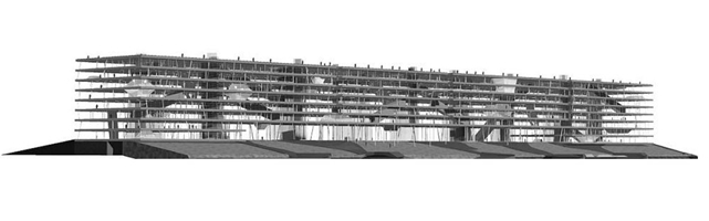 Aan de zuidelijke punt van de as voorziet het bureau een nieuw gebouw, de culturele hotspot Rotterdam Green Buidling. Door er een strand bij aan te leggen, ontstaat een permanente recreatieve verbinding tussen de stad en de Maas. Dit is volgens Monolab niet alleen goed voor de inwoners, maar trekt ook toeristen aan.