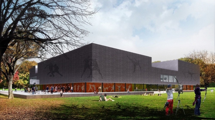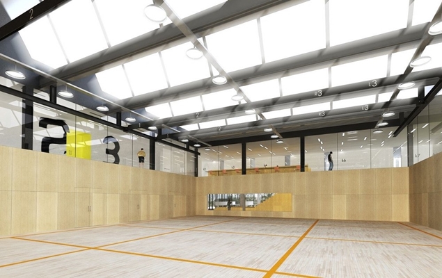is rekening gehouden met de onderwijs- en sportfunctie. In het 16.500 m2 tellende sportcomplex komen onder meer vijf sportzalen, een 15 meter hoge klimtoren, collegezalen en een parkeerkelder.