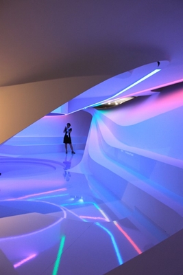 pakt het paviljoen de bezoeker in en waant deze zich het middelpunt van de gehele kunstmanifestatie.