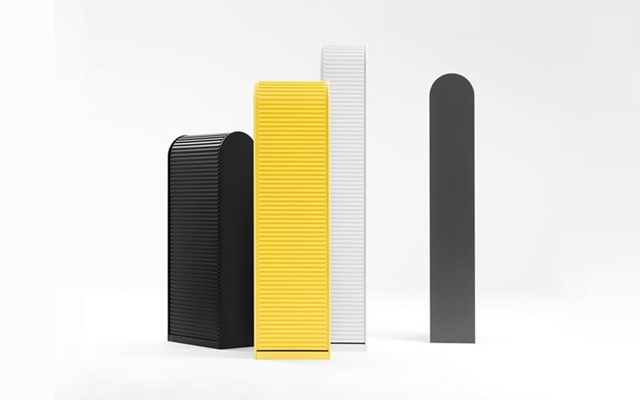 : een serie smalle kasten met rolluiken uit 1973 voor Pastoe.