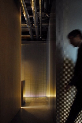 OMA heeft verder contrast tussen de expositie- en ondersteunende ruimten gecreëerd via de afwerking. Waar de toonzalen zeer verfijnd zijn gedetailleerd, hebben de tussenruimten een robuust en onafgewerkt karakter. Dankzij de verlichting wordt het contrast én de relatie tussen de dozen en tussenruimten ’s avonds extra benadrukt, zegt OMA.