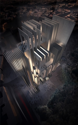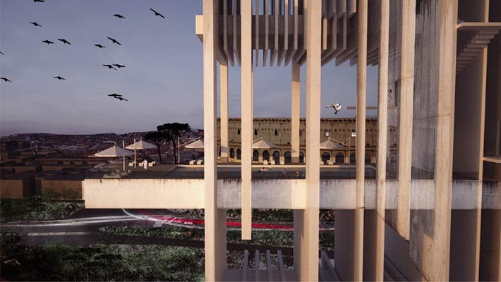 Global Architects bedacht het concept van 'De Filter'. Het gebouw ziet eruit als een filter en ‘infiltreert’ zo letterlijk in de stedelijke context van Rome. Dankzij de ruimtes tussen de schijven blijft het zicht door het gebouw heen behouden.