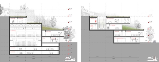 Het voorstel van Laura Alvarez, Kultur Plataformak (platformen van cultuur) is georganiseerd rond vier terrasvormige bouwlagen. Deze ‘cultuurplatformen’ vormen een geheel met de helling waarin ze zijn verwerkt.