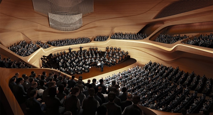 de visie heeft ontwikkeld. Het gebouw wordt het gezamenlijke onderkomen van het Koninklijk Conservatorium, het Residentie Orkest en het Nederlands Dans Theater. Behalve vier zalen komen er aanvullende voorzieningen als horeca.