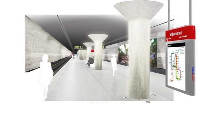 “Voor de aanbesteding zijn we gevraagd onze visie te illustreren aan de hand van twee voorbeeldstations: het ondergrondse station Wibautstraat, en het bovengrondse station Bullewijk”, vertelt GROUP A. “Momenteel wordt gewerkt aan de uitwerking van een visie voor alle stations afzonderlijk; na consultatie binnen Amsterdam zal vervolgens het definitief ontwerp uitgewerkt worden.”